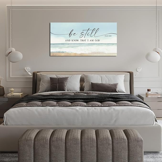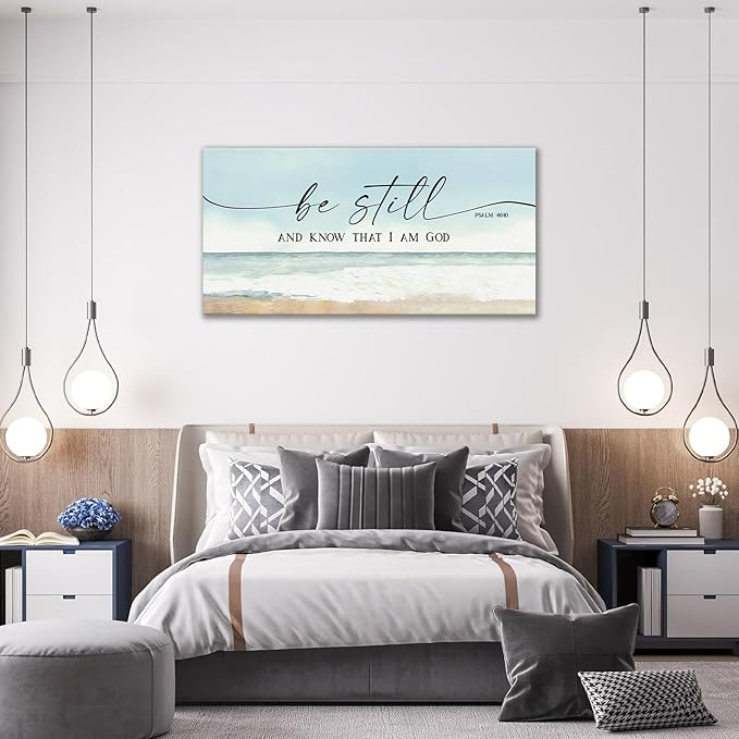 Large Christian Wall Art Be Still and Know That I Am God Pictures Wall Decor Bible Verse Psalm Canvas Painting Print Modern Home Decor Artworks Framed for Living Room Bathroom Master Bedroom 60"x30"