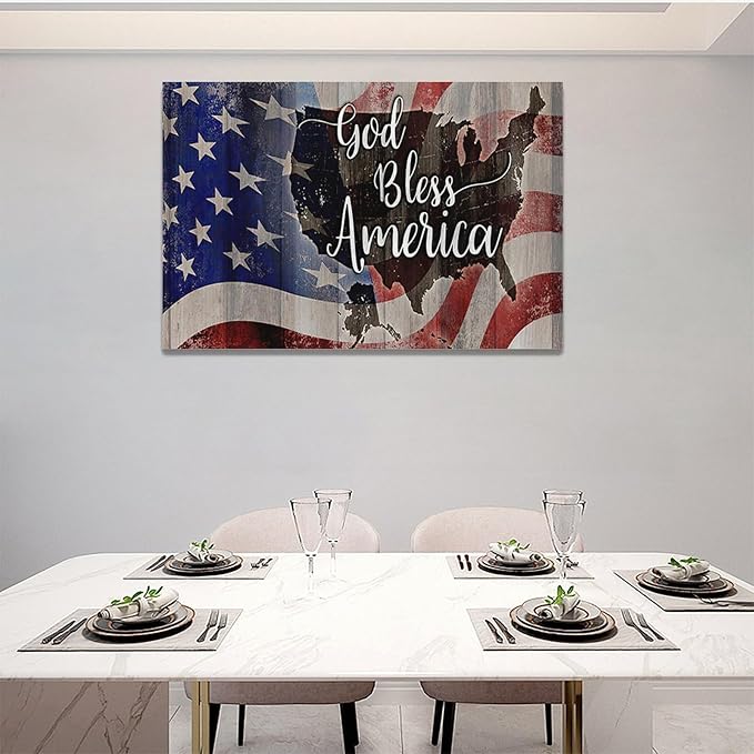 Large American Flag and USA Map Wall Art Rustic United States Map Pictures Wall Decor God Bless America Canvas Painting Print Home Decor Artwork Framed for Living Room Bathroom Master Bedroom 24"x16"