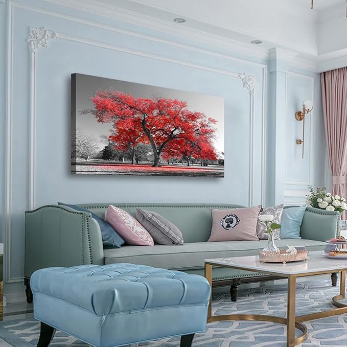 - 1.【The size of canvas wall art】-Red Tree of Life wall art size:20 x 40inches x 1pcs(50 x 100cm x 1pcs),canvas art style:Red Tree of Life pictures print on canvas wall paintings,the canvas wall art stretched has a black hook already mounted on the wooden bar and easy hanging.