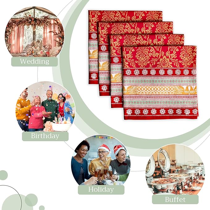 - Package Includes: Set of 4 cloth napkins, each 20"x20" in size. These soft square napkins add a cozy charm to any table setting. Perfect for everyday or special occasions. Crafted from 100% cotton, our products are Designed in Europe and Made in India.
