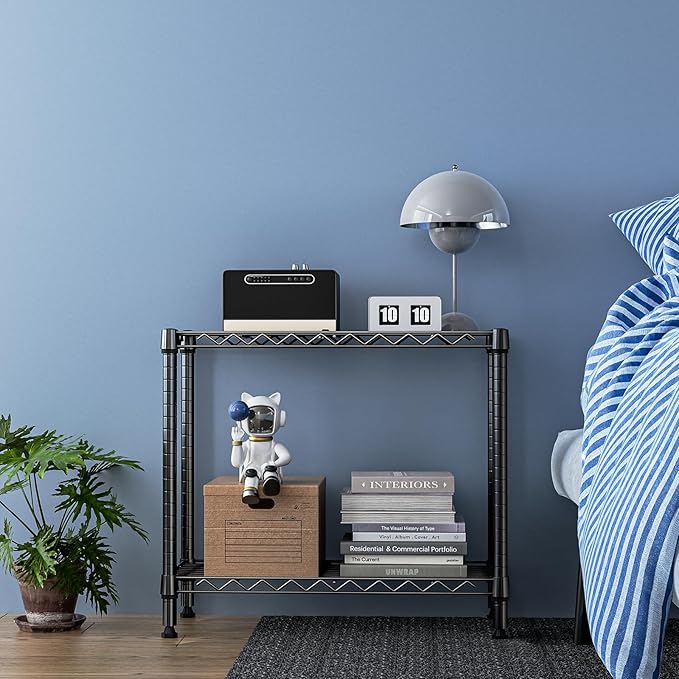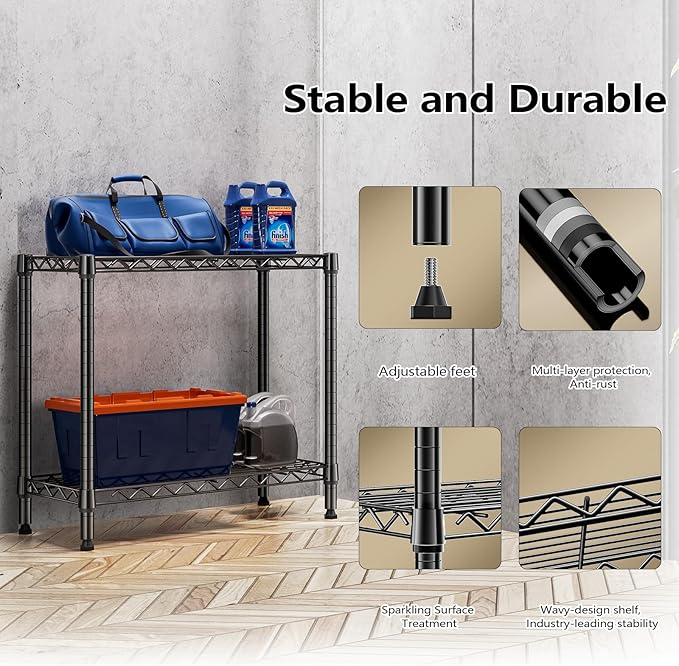 MZG 220 lbs 2 Tier Storage Rack Metal Wire Shelving Unit, Storage Standing Household Shelf Organizer for Laundry Bathroom Kitchen Pantry Closet Basement Utility Room, Black 11.8" D x 27.6" W x 23.4" H