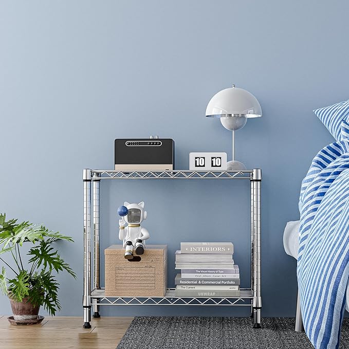 MZG 220 lbs 2 Tier Storage Rack Metal Wire Shelving Unit, Storage Standing Household Shelf Organizer for Laundry Bathroom Kitchen Pantry Closet Garage Utility Room, Chrome 11.8" D x 27.6" W x 23.4" H