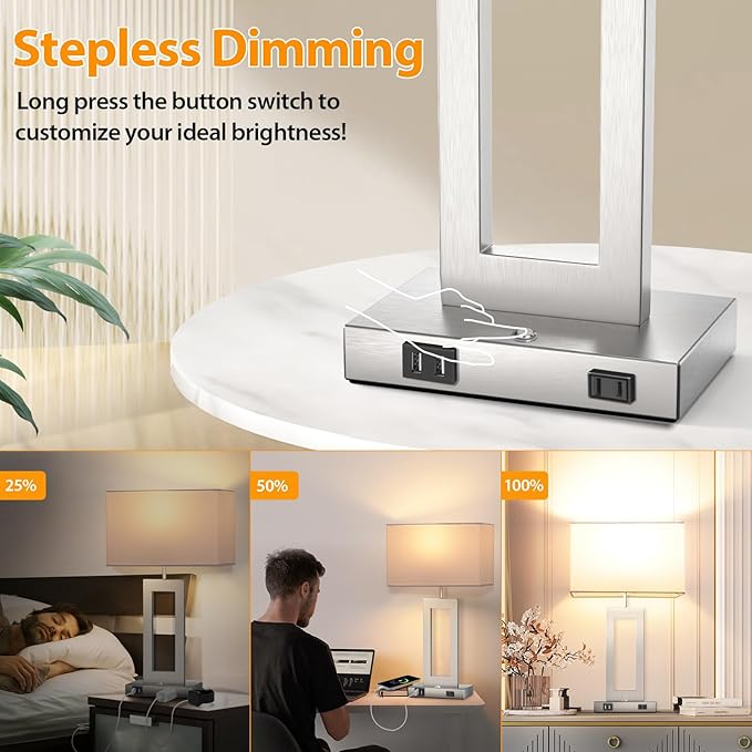 - γπ¨π ππππππ 5%-100% πΊπππππππ π«ππππππγNot only limited to 3-level brightness, our modern touch control table lamps can be freely dim from 5%-100% by long press the button on base! This set of 2 dimmable table lamps provide multiple lighting effects to meet all kinds of occasions for no matter home or office. No more steps to reach a troublesome wall plug to control your outdated lamps