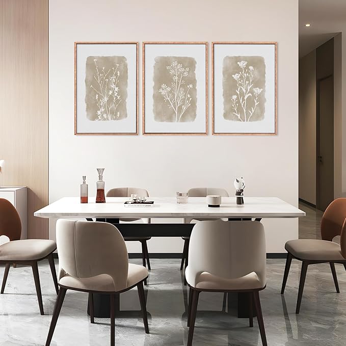 CHDITB Neutral Botanical Wall Art Set of 3, 24"x36" Large Framed Boho Farmhouse Wall Decor, Modern Minimalist Floral Wall Painting, Rustic Wildflower Canvas Art Prints for Living Room, Bedroom