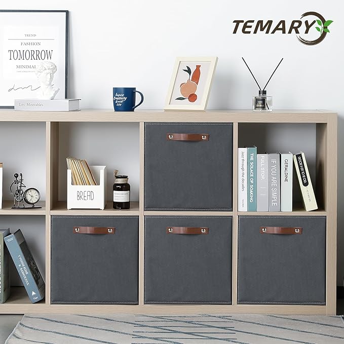 Temary Foldable Cube Baskets 4Pack - Grey, 13x15x13 Inch Fabric Storage Organizer Bins with Handles