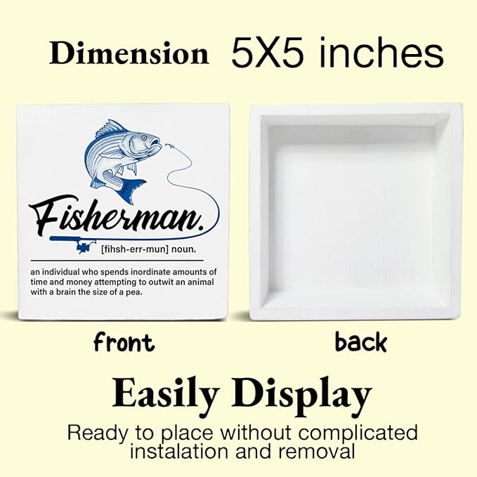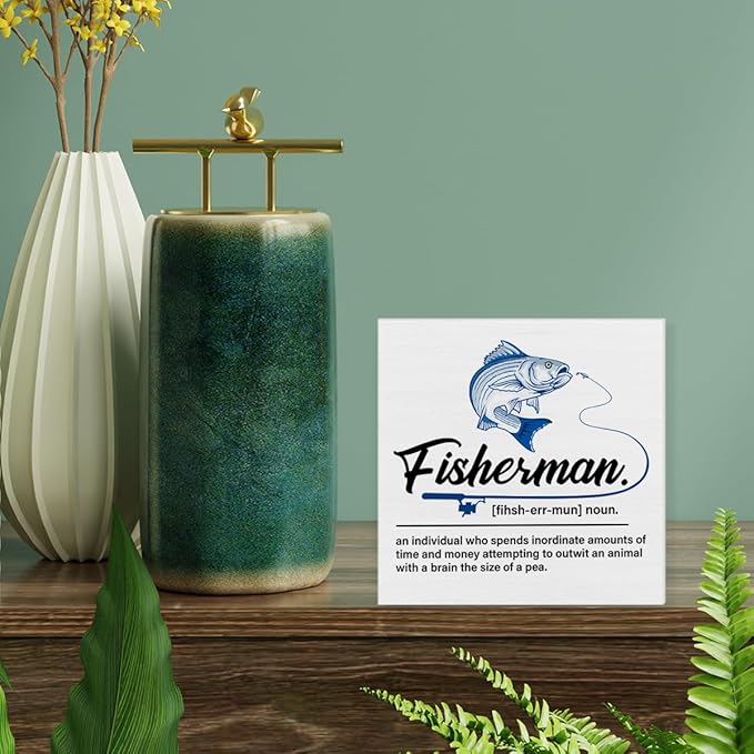 Fisherman Sign Decor Fisherman Definition Wood Block Sign Summer Decoration for Home Desk Table Shelf Wall Decor