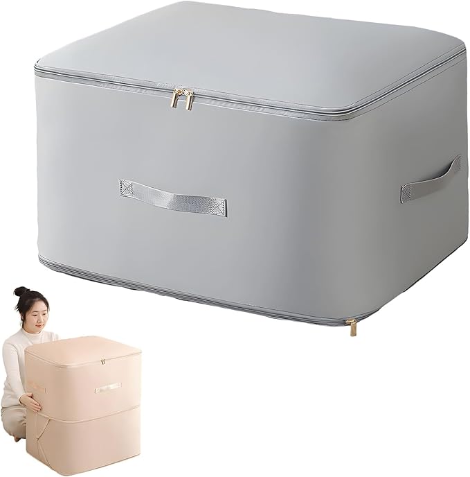 Dustproof and Moisture-proof Compression Storage Bag, Comforter Storage Bag, Folding Organizer bag for King/Queen Comforters, Pillows, Bedding/Quilt, Blanket, Duvet, Space Saver (Gray, L)