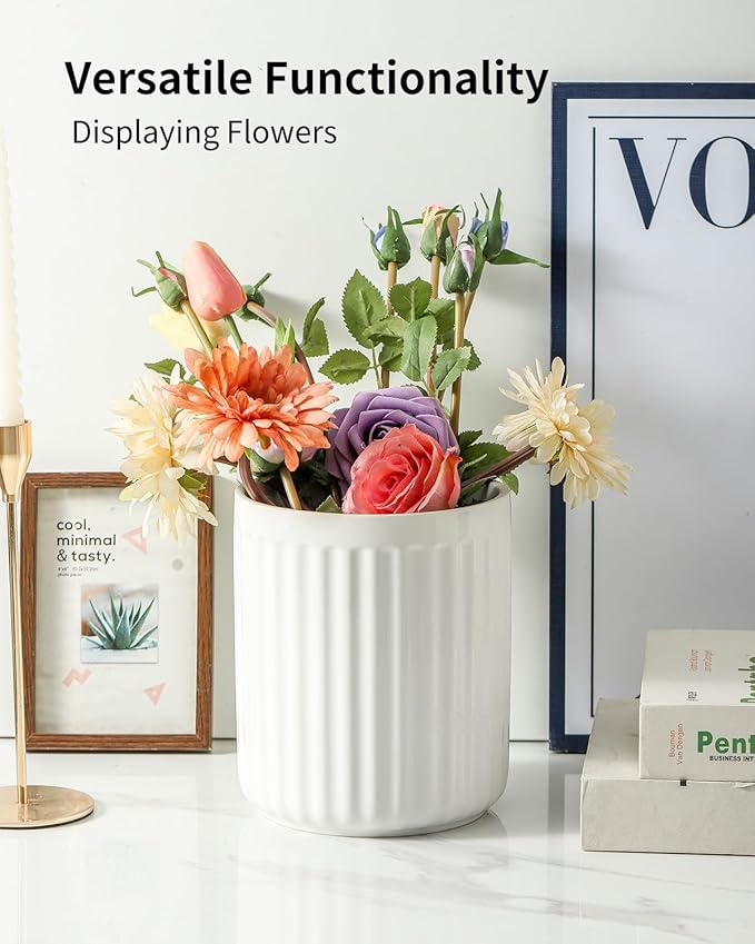 - Textured Elegance: This ceramic white utensil holder features a ribbed texture with lighter flecks, enhancing your kitchen decor and adding a tactile touch that enriches your countertop’s charm