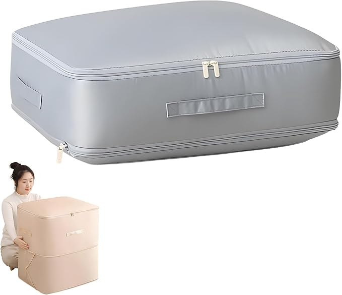 Dustproof and Moisture-proof Compression Storage Bag, Ultra Space Saving Self Compression Organizer, Comforter Storage Bag, Folding Organizer bag for Bedding/Quilt, Space Saver (Gray, M)