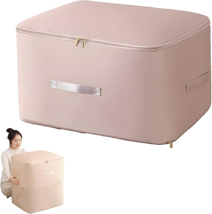Atlodas Dustproof and Moisture-proof Compression Storage Bag, Comforter Storage Bag, Folding Organizer bag for King/Queen Comforters, Pillows, Bedding/Quilt, Blanket, Duvet, Space Saver (Pink, L)