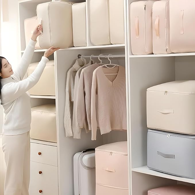 - 【Declutter & Save Space 】Perfect for storing and organizing winter blanket, duvets, king and queen size comforters, sweater, quilts, sheets, baby items etc; Hassle free no vacuum storage that has a big capacity though still compact; Safe to store in Attic or Basement; Size:M: 52*42*30cm/ L:52*42*60cm