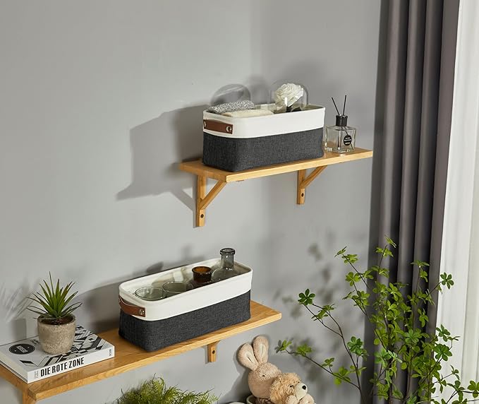 - Attractive Design: Our small basket has a sleek design and comes with two faux leather handles and a dual-color exterior. These organization baskets have a modern and luxurious feel with a functional design.