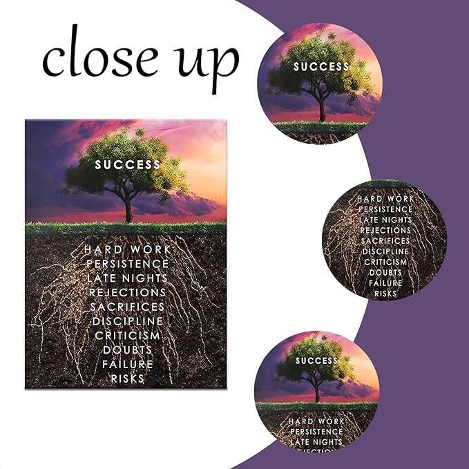Wall Art Success Tree Hd Printed Pictures Canvas Inspirational Motivation Entrepreneur Quotes Artwork Posters Home Painting Frame For Living Room Gym Decor Ready to Hang [24''W x 18''H]