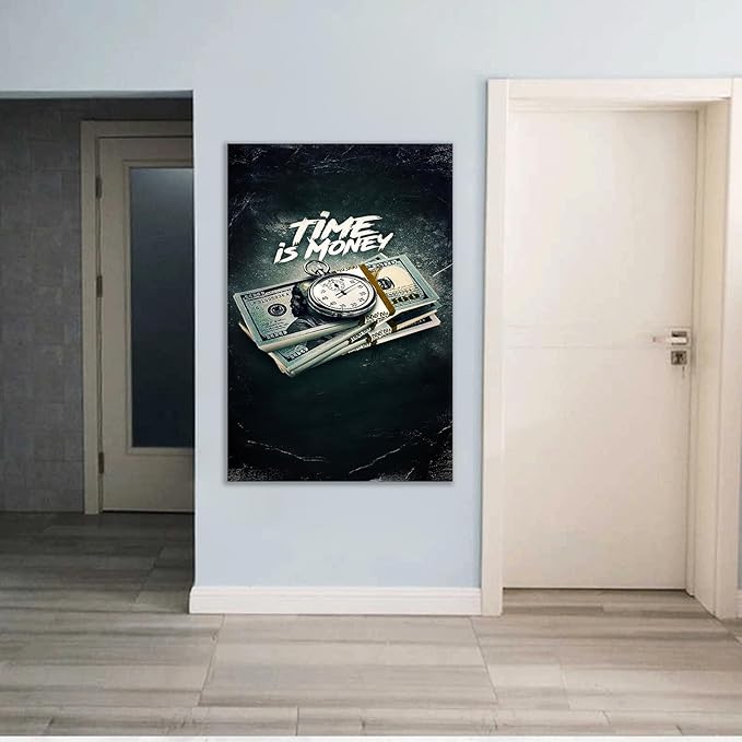 Inspirational Wall Art Modern Pictures Print Vintage Painting Time is Money Nordic Canvas Quotes Positive Poster Home for Office Living Room Decoration Framed Ready to Hang [36''W x 24''H]