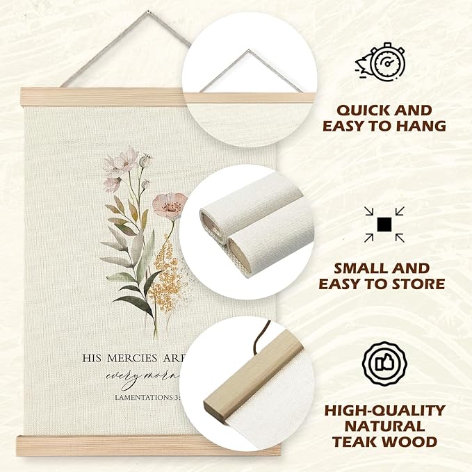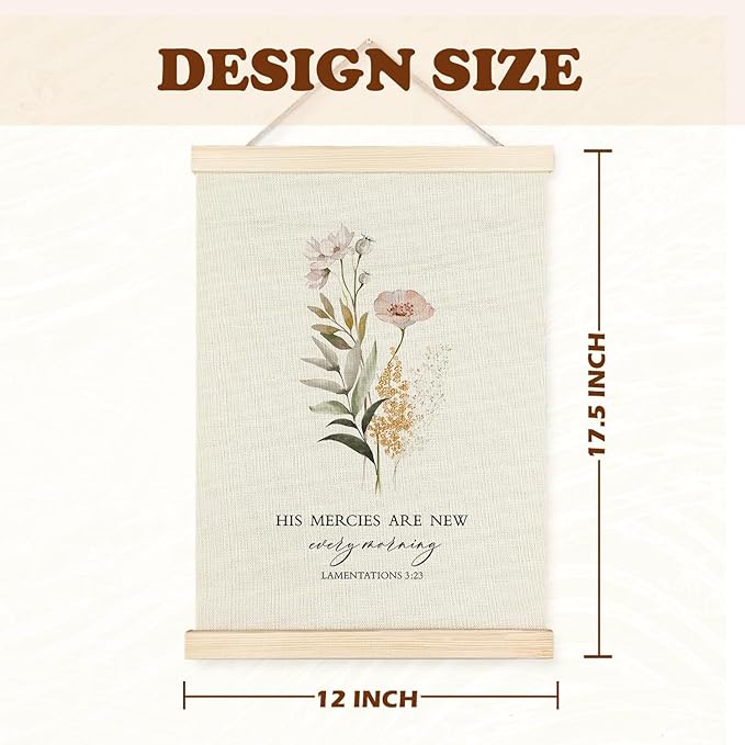 Supwhd Christian Wall Decor for Bedroom Living Room Office, His Mercies are New Every Morning Christian Wall Art Framed 12x16