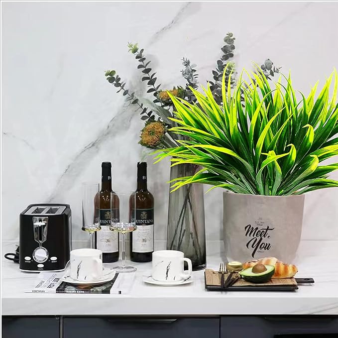 - 【 Full & Fluffy Fake Plants】You will get 16 bundles of artificial tall grass plants, full Size and Ideal Home: approx 17.3" tall x 9.5". each plant has 16 Stems with Lush leaves. They were also nice accent pieces, will perfect to arrange around smaller flowers or large plants.