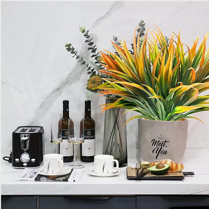 - 【 Full & Fluffy Fake Plants】You will get 16 bundles of artificial tall grass plants, full Size and Ideal Home: approx 17.3" tall x 9.5". each plant has 16 Stems with Lush leaves. They were also nice accent pieces, will perfect to arrange around smaller flowers or large plants.