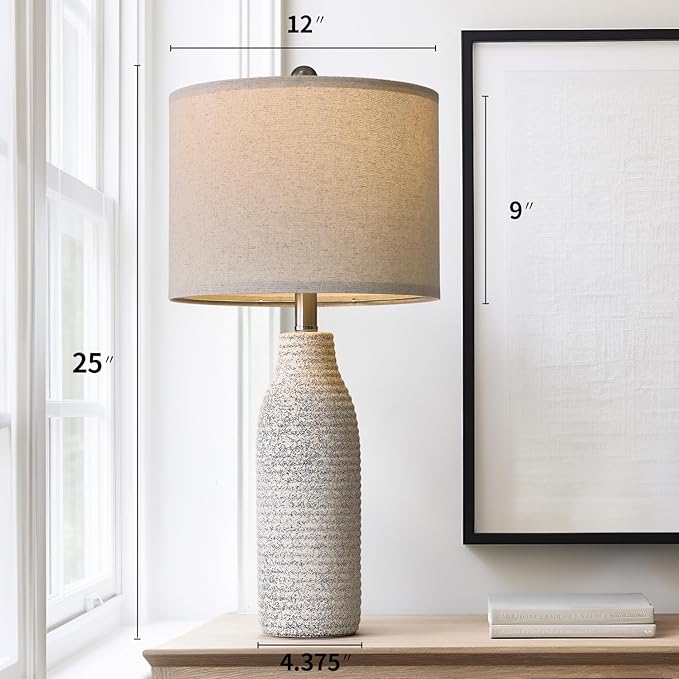 - Perfect Size & Space Saving: Measuring 25 inches in height and a 12 inch wide shade, this nightstand lamp is perfect for decorating your living room, bedroom, or entryway without taking up too much space