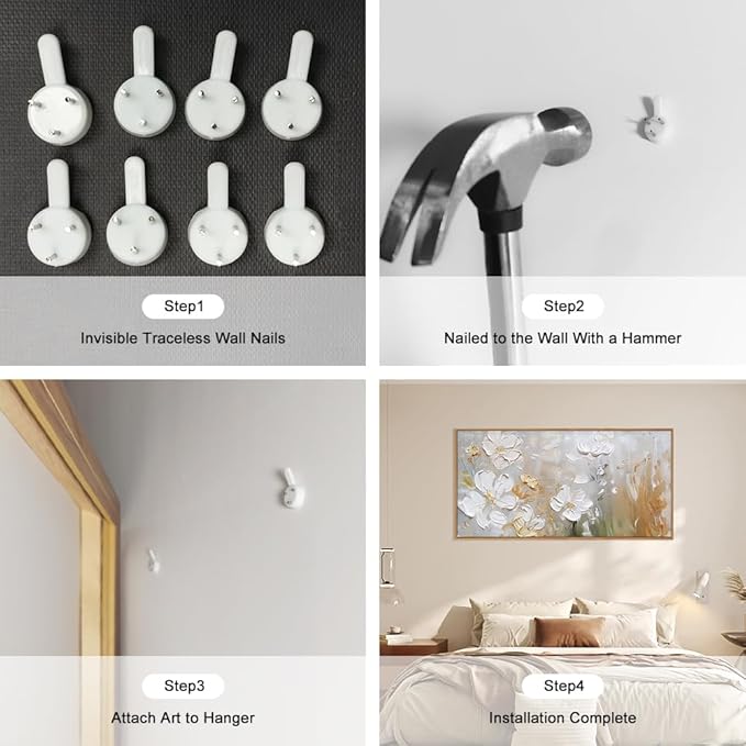- 【Easy to Display】This white flower With the provided hanging kit, displaying the artwork is a breeze. Simply measure your wall space, hang them up, and enjoy the transformation of your space into a haven of beautiful art.