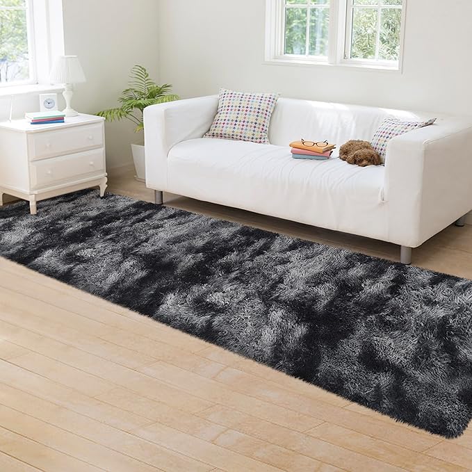 Tie-Dyed Runner Rug for Bedroom Black Grey 2x8ft Fluffy Area Rug Bedside Runner Rug for Kids Room Boys Teens Nursery Baby Living Room Dorm Home Decor Carpets