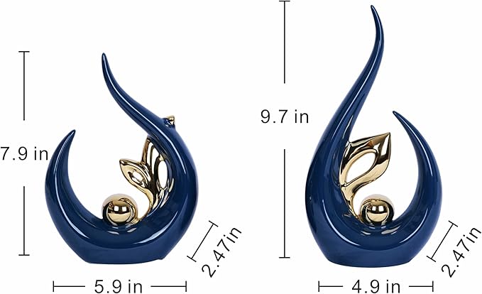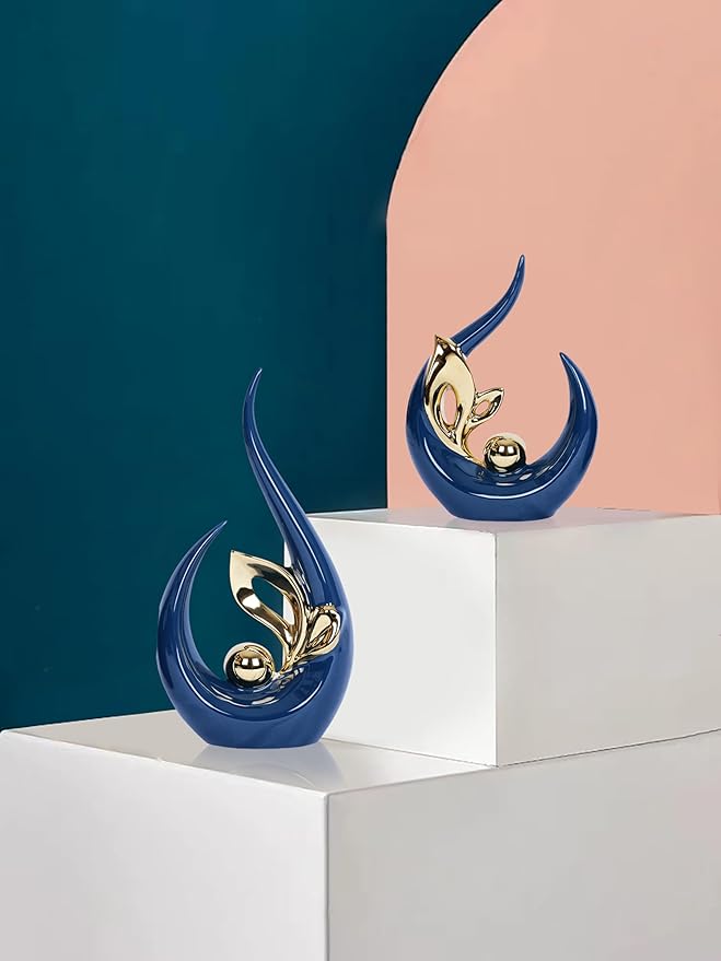 2 PCS Navy Blue and Gold Mid Century Modern Ceramic Statue Sculpture - Home Decor for Living Room, Kitchen, Coffee and Dining Table Centerpieces