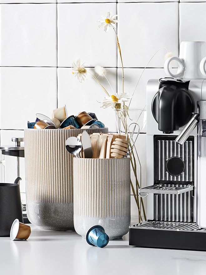 - Farmhouse Home Decor: Our kitchen utensil organizer features a boho, rustic finish highlighted by vertical ribbed and fluted stripes; This stylish design seamlessly complements any kitchen decor, elevating both your culinary efficiency and the overall ambiance of your home