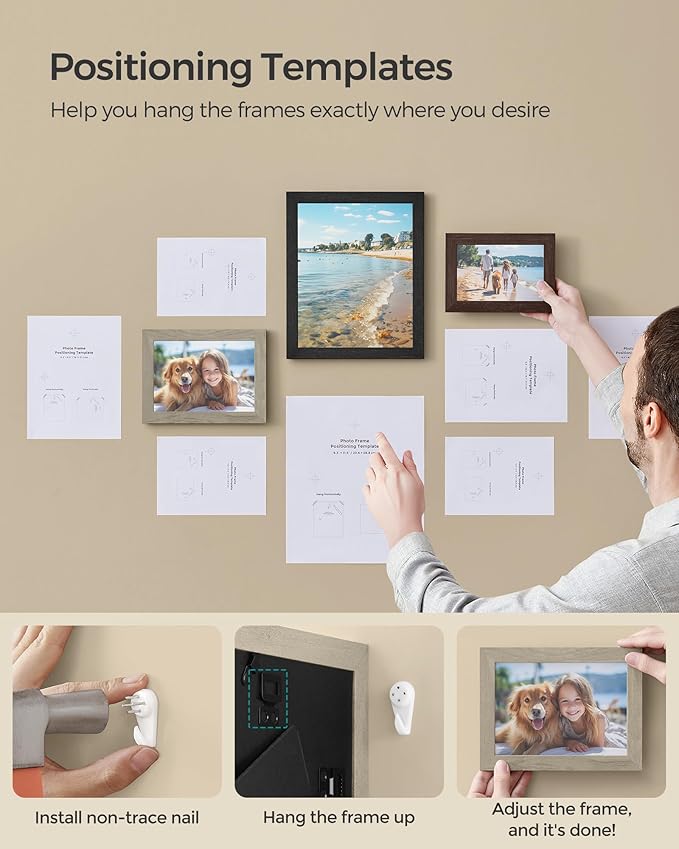 - [Versatile Placement] Horizontal, vertical, mounted on the wall, or standing upright on the shelf or table—display these collage picture frames the way you want; use them in the living room, office, study, bedroom, or mix them up throughout the gallery