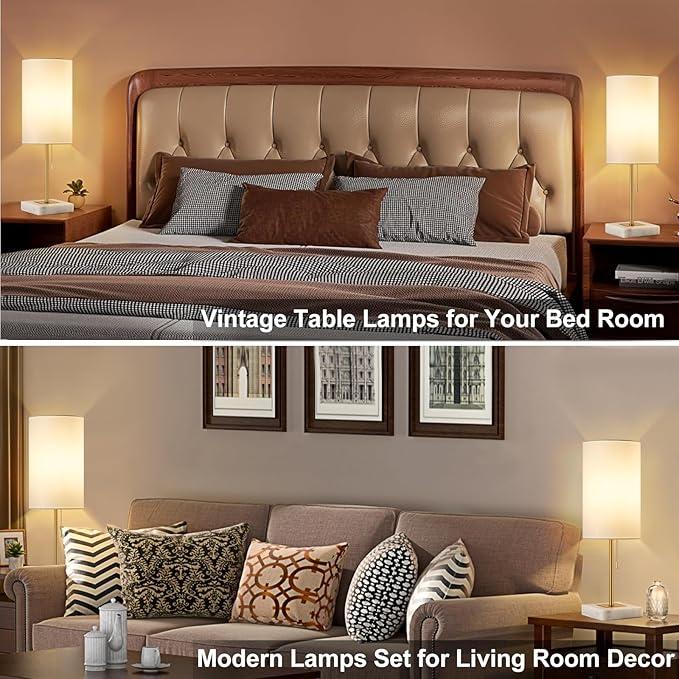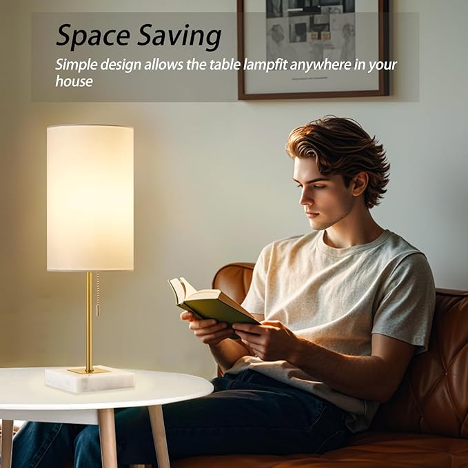- 【Minimalist Lamp for Small Spaces】Lamps dimensions - 18 x 6x 5 inches, the square marble table lamps are small in size so they can fit anywhere in your house. Table lamp for living room, bedroom, dorm, study room, guest room, kids room and so on. With a white linen shade and marble + metal base, the small table lamp is exquisitely crafted and ideal as a gift for family and friends.