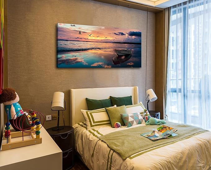 OKEXCKK Coastal Wall Decor Beach Canvas Wall Art Picture for Living Room - Sunset Ocean Landscape Painting Print Decor Blue Seascape Nature Artwork Poster for Bedroom Office Decoration - 20"x40"