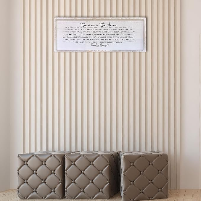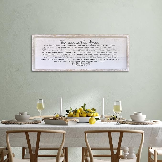 Surfapans The Man In The Arena Wall Decor 40"x15" Morden Office Motivational Wood Framed Sign For Men Large Farmhouse Living Room Inspirational Quotes Positive Speech Home Wall Decoration (White)