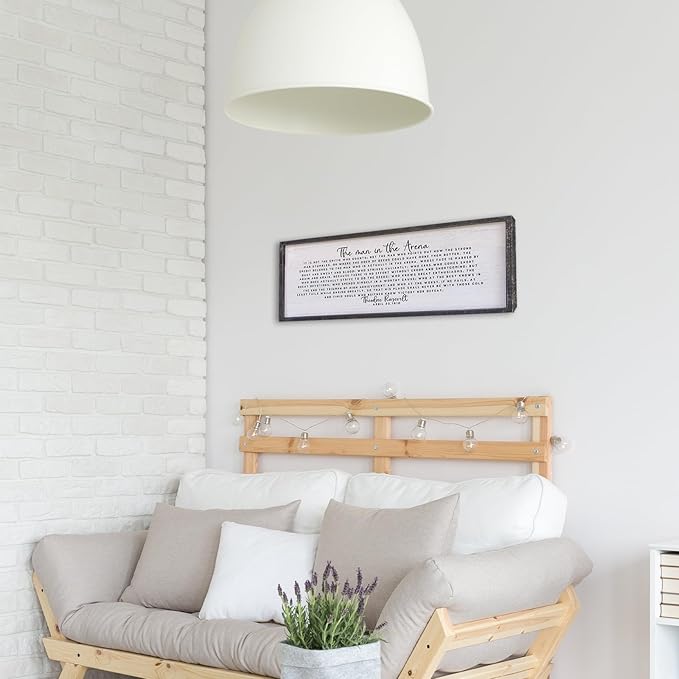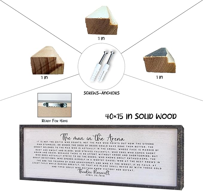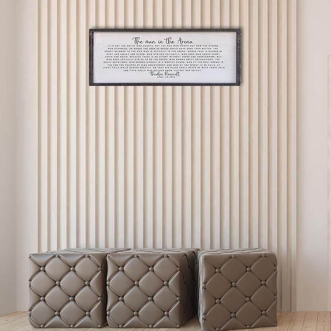Surfapans The Man In The Arena Wall Decor 40"x15" Morden Office Motivational Wood Framed Sign For Men Large Farmhouse Living Room Inspirational Quotes Positive Speech Home Wall Decoration (Black)
