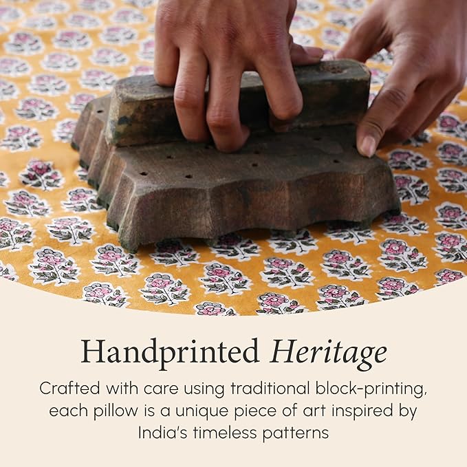 CPC 100% Cotton Throw Pillow Covers 18x18 Inch, Set of 2 Yellow Block Print Pattern Couch Pillow, Cute Boho Decorative Pillows for Living Room, Bedroom with Hidden Zipper- Yellow Citrine