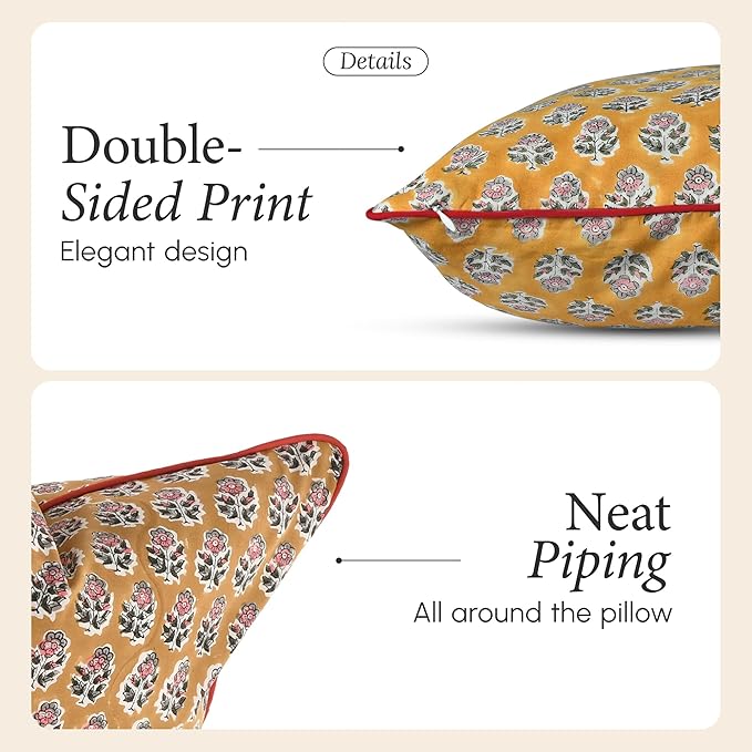 - UNIQUE DESIGNS: These cushion cover designs are made with 20 inch enclosed hidden zipper for shape maintainence and enhanced look. These are unique and one of a kind as they are inspired from the patterns on India's old forts.