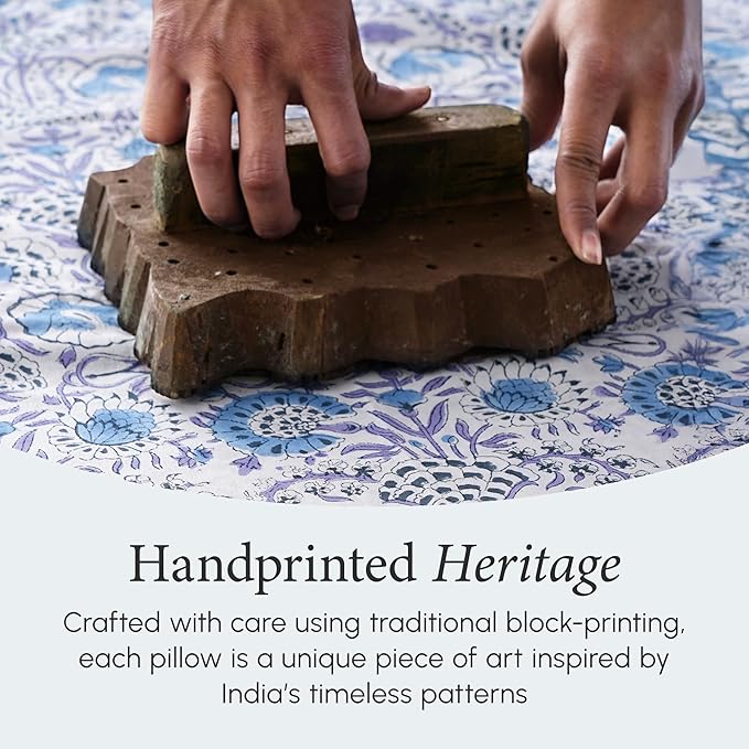 CPC 100% Cotton Throw Pillow Covers 24x24 Inch, Set of 2 Blue Block Print Pattern Couch Pillow, Cute Boho Decorative Pillows for Living Room, Bedroom with Hidden Zipper- Indigo Blue