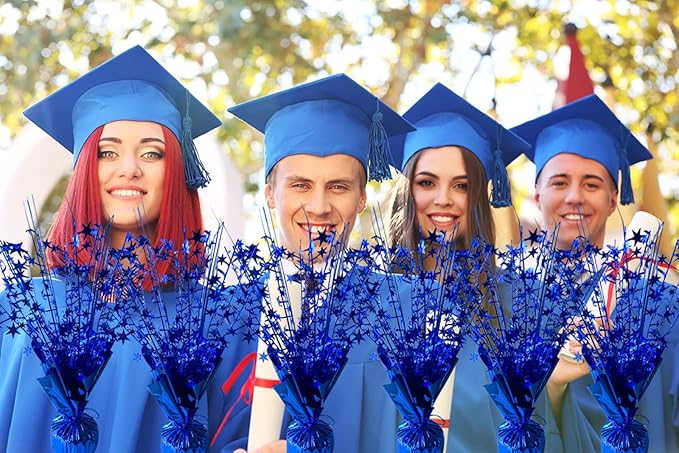 6 Pack Metallic Foil Spray Centerpiece Star Table Decoration Burst Table Centerpieces for Birthday Wedding Anniversary Graduation Holiday Party Supplies Decor, Blue