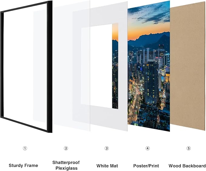 - Versatile Size Options: The frame set includes 3 removable white 8x12 inch mats for 8x12 posters and can fit 11x17 inch pictures without the mat, catering to different picture dimensions
