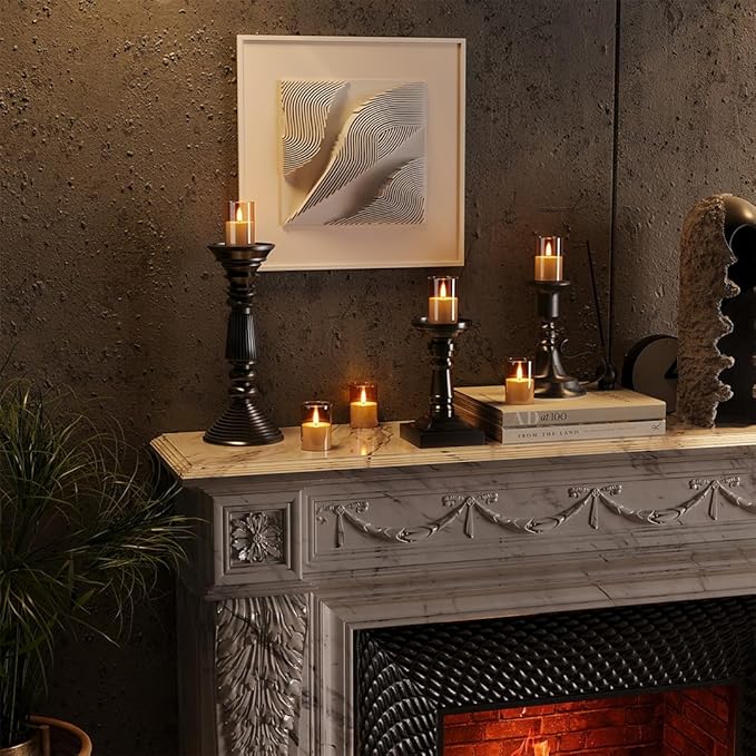 12Pack Flickering Flameless LED Candles with Timer, Battery Powered - Small Pillar & Votive, Acrylic Made, Gold (2"X3")