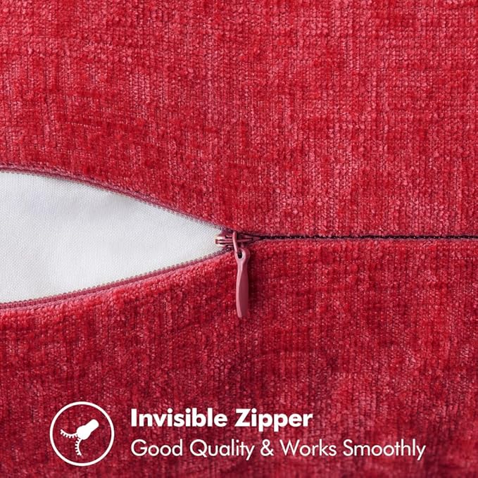 MIULEE Pack of 2 Christmas Pillow Covers 18x18 Inch Red Farmhouse Decorative Throw Pillow Covers with Stitched Edge Soft Chenille Solid Dyed Couch Pillow Covers for Sofa Bed Living Room