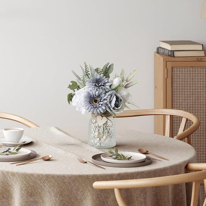 Leftover Fake Flowers in Vase with a Flower Arrangement,Silk Artificial Flowers in Vase,Dining Table Centerpiece Decor,Flower Arrangements for Home Decor,Kitchen Decor