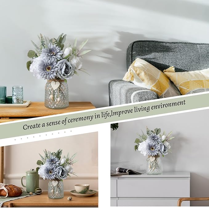 - Perfect Gift Choice:Looking for a thoughtful gift?LEFTOVER's faux flower arrangement with vase is a great choice.Whether it's for a loved one's birthday,a holiday celebration,or a housewarming party,these flower decorations are guaranteed to delight the recipient