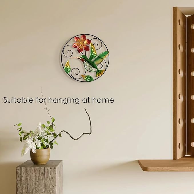 - BEST QUALITY - The lovely Round metal/Glass Hummingbird and Flower wall decoration is made of durable metal and high-grade coating, the special process makes the bright colors not easily fade. emphasis on quality and attention to detail. strong and stable material to use for a long time, not easy to break or deform, you can use it at ease