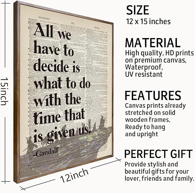 Lord of the Rings Poster, LOTR Gifts, Framed LOTR Poster, Gift for LOTR Decor, All We Have to Decide is What to Do With The Time That is Given Us - Gandalf, LOTR Merch, LOTR Birthday Decor 12x15