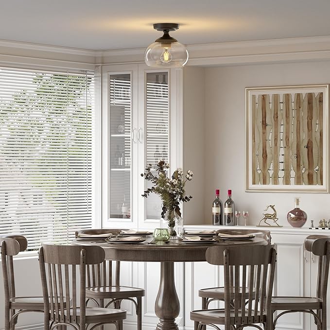- Modern Ceiling Light: Vonluce's semi flush mount light blends clear glass shade with a matte black metal canopy, adding a timeless charm to any interior style, from farmhouse to chic modern