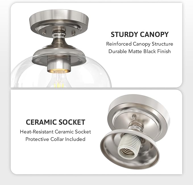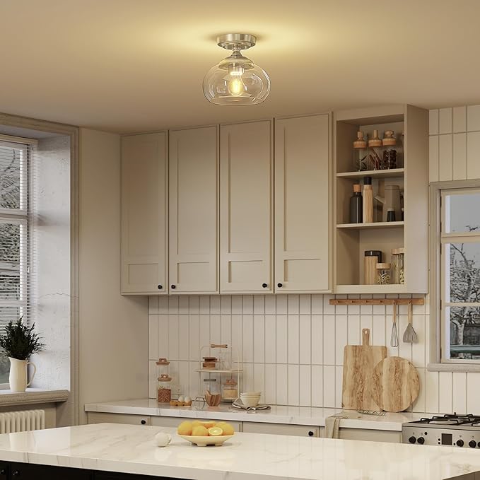 - Modern Ceiling Light: Vonluce's semi flush mount light blends clear glass shade with a brushed nickel metal canopy, adding a timeless charm to any interior style, from farmhouse to chic modern