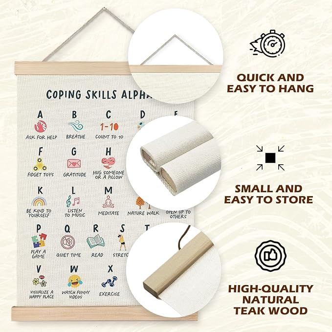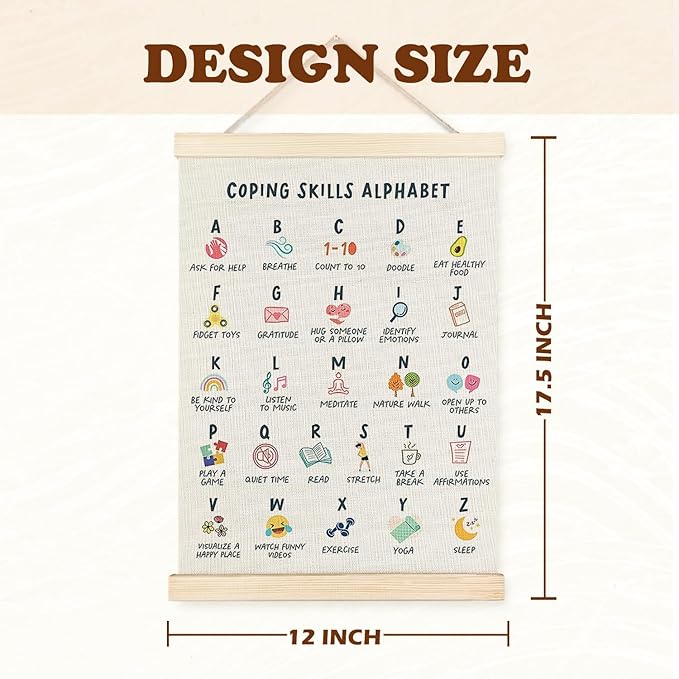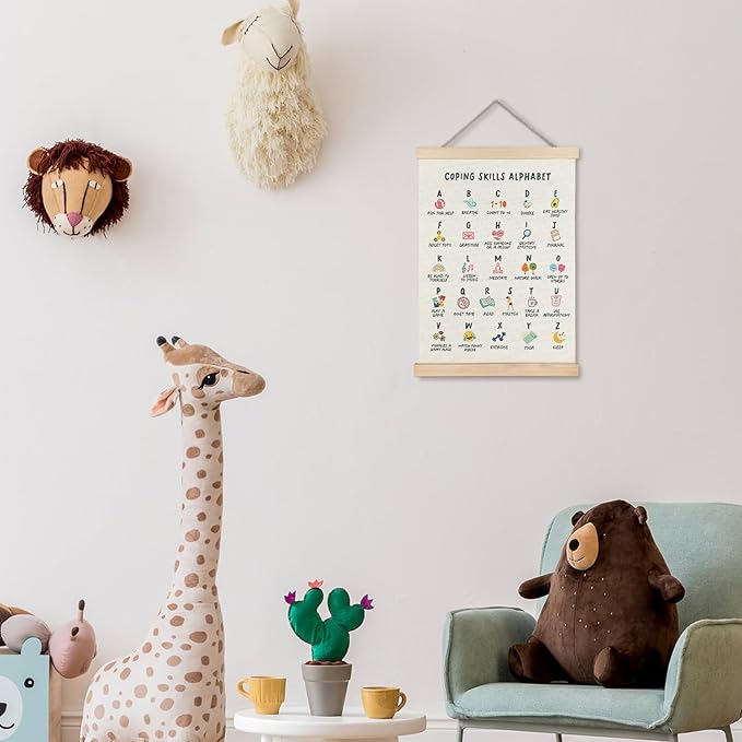Supwhd Coping Skills Alphabet Poster for Kids, Mental Health Wall Decor for Classroom Nursery Kids Room Playroom School Counselor Office, Mental Health Poster Hanger Frame, 12x16