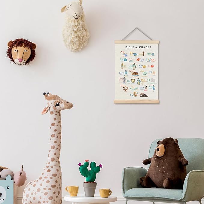 Supwhd Bible Verse Posters for Kids, Bible Alphabet Poster Hanger Frame, Christian Classroom Decor, Alphabet Wall Decor for Classroom Church School Christian Home, 12x16 Inches