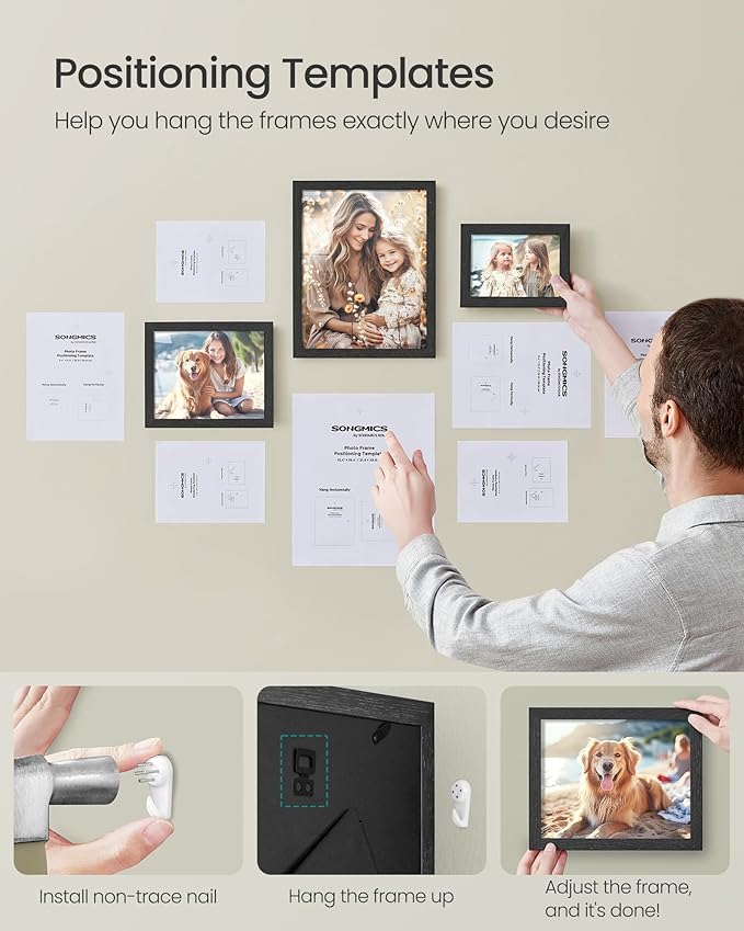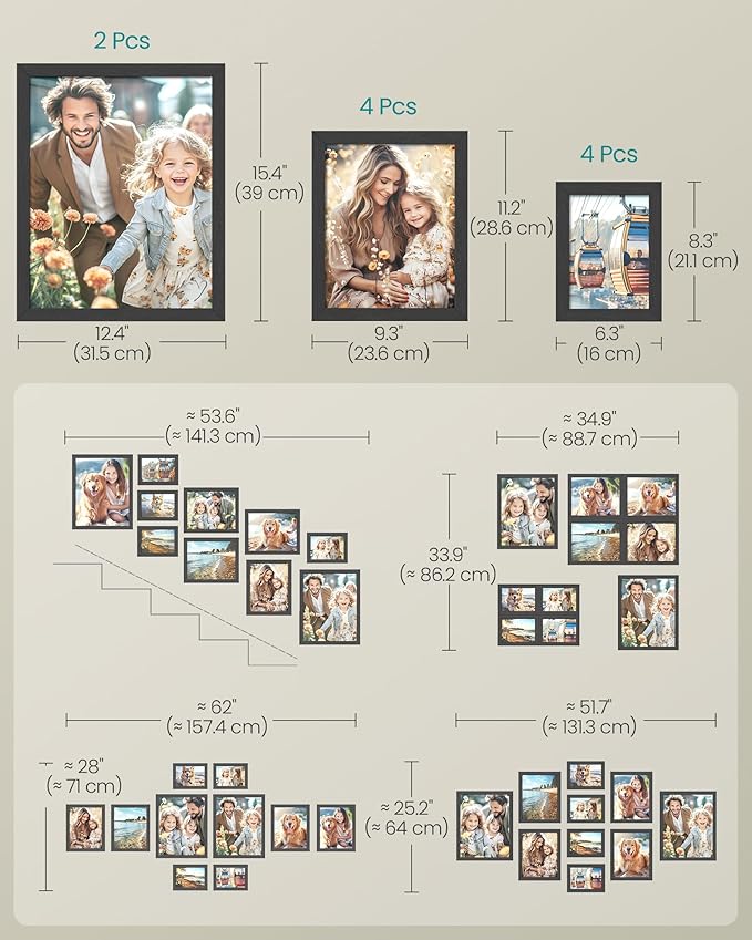 - [Versatile Placement] Horizontal, vertical, mounted on the wall, or standing upright on the shelf or table—display these collage picture frames the way you want; use them in the living room, office, study, bedroom, or mix them up throughout the gallery