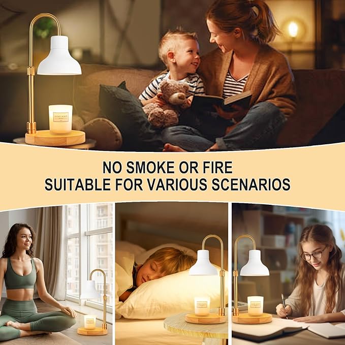 - 【Convenient Dimmable & Timer Function】You can control the melting speed by adjusting the brightness of the candle warmer to regulate the intensity of the scent. The brighter the setting, the faster it melts. In addition, you can also use the timer (2H/4H/8H) to automatically turn off the bulb after the desired time, ensuring safety, energy saving and prolonging bulb life. Creating the perfect ambiance for any occasion or mood, you can be assured of a relaxing and enjoyable scenting experience.
