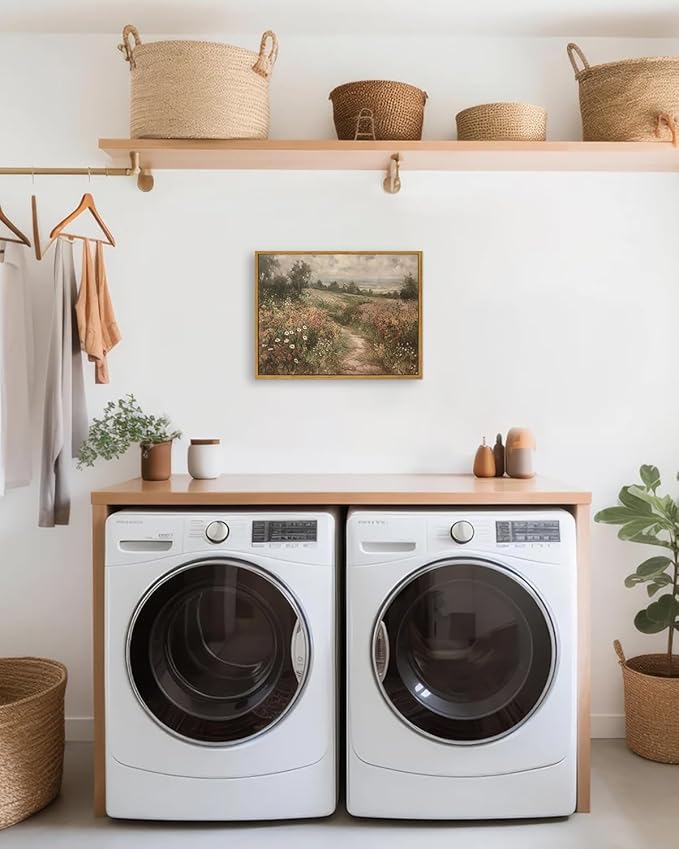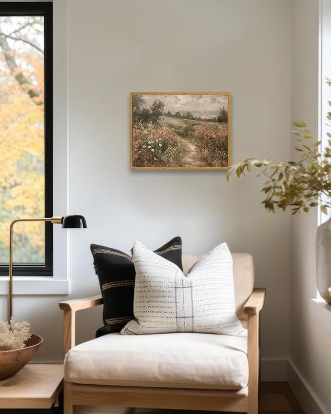 - 【Framed Wall Art - Wildflower】Featuring countryside flower fields and wilderness, the farmhouse decor captures the beauty and tranquility of nature, bringing a sense of wonder into your living space. The framed vintage landscape wall art decor is ideal for farmhouse decoration, this artwork adds a rustic touch to your bathroom, bedroom, and living room, creating a serene and cozy atmosphere.