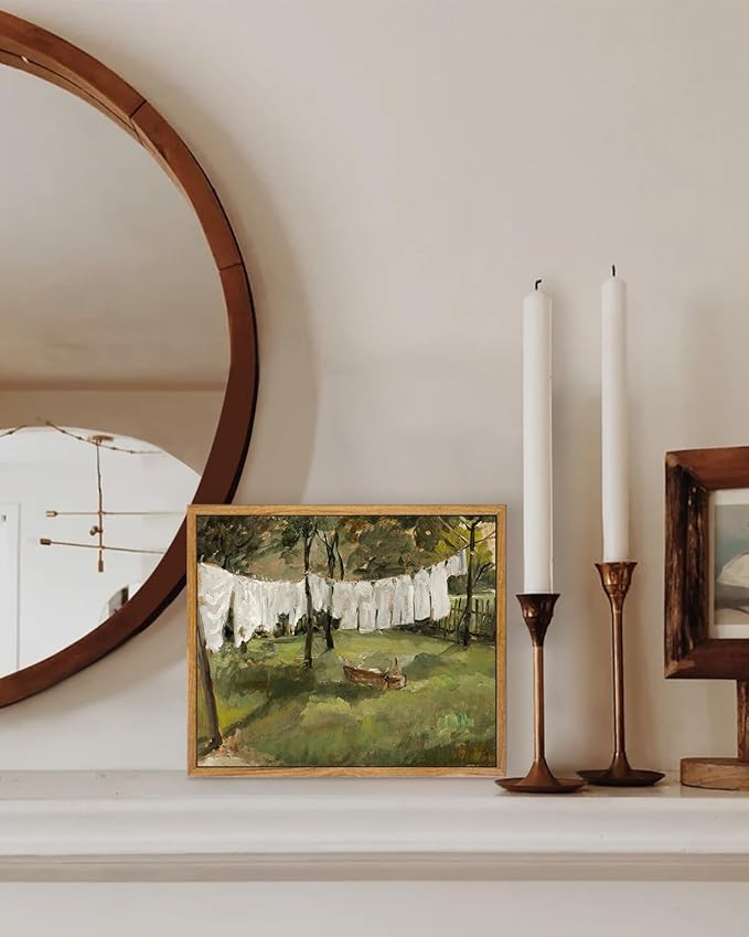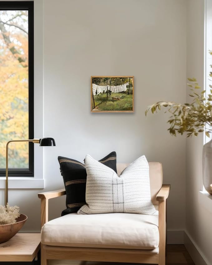 KBKBART Framed Canvas Wall Art Home Decor, Vintage Laundry Room Art Prints Wall Decor, Farmhouse Decor Canvas Oil Painting, Antique Country Landscape Wall Art Prints for Beroom Living Room Bathroom (8"x10")